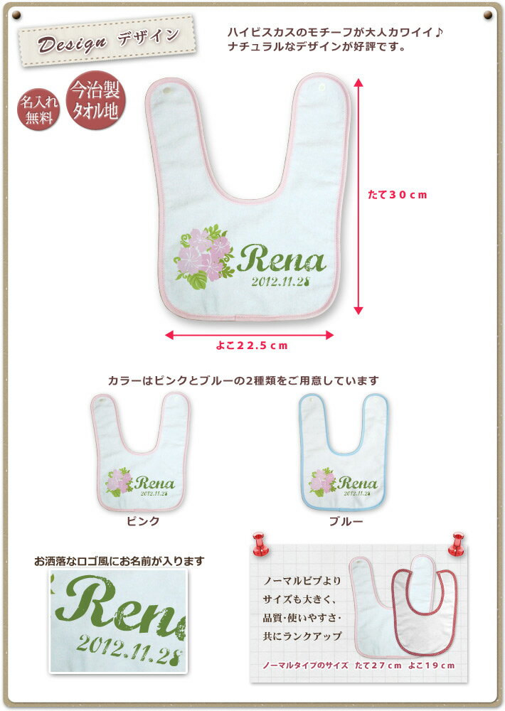 出産祝い 名入れ 名前入り プレゼント 男の子 女の子 ビブ スタイ >>> メール便についての詳しい説明はこちら <<<大人カワイイ色使いがオシャレです!POPデザイン「ハイビスカス」の今治製スタイです。