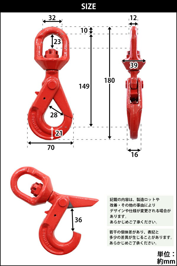 送料無料 スイベルフック 使用荷重約1.2t 約1200kg G80 鍛造 エコノミーモデル フック スイベル 回転 吊り具 ロッキングフック ロックフック セルフロッキングフック ラッチロックフック アイタイプ 重量フック 吊りフック チェーンスリング ワイヤー 赤 レッド shook12t